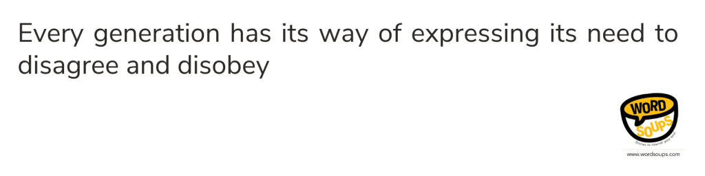 Every generation has its way of expressing its need to disagree and disobey, but during those times, disobeying often meant extermination.