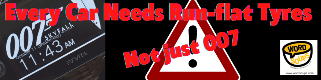 I place the hazard board behind the car and curse my minuscule bank balance for not having enough cash to fit ‘run-flat’ tyres, which allow super-spy James Bond to keep driving even when he’s being shot at.